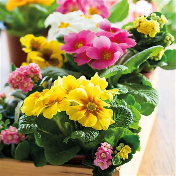 Sie können den Frühling kaum erwarten? Dann vergeht mit bunten Primeln (Primula acaulis) die Zeit bis zum Frühlingsanfang viel schneller. Sie kommen in Körben und Töpfen im hellen und pastellfarbenen Farben am besten zur Geltung. Es gibt über 500 Primel-Arten, die mit einer Vielzahl an Farbvarianten und Blütenformen begeistern. Alle benötigen einen hellen Standort und regelmäßige Wasserzugaben. Verblühte Blüten sollten am besten entfernt werden, um die Bildung neuer Knospen anzuregen. Als Zimmer-pflanze glänzt die Primel nicht nur Solitär – sie lässt sich auch gerne auf ein Zusammen-spiel mit anderen Frühjahrsblühern, wie beispielsweise Hyazinthen (Hyacinthus) ein. Selbst als Schnittblume ziert sie kleine Vasen und Gläser.