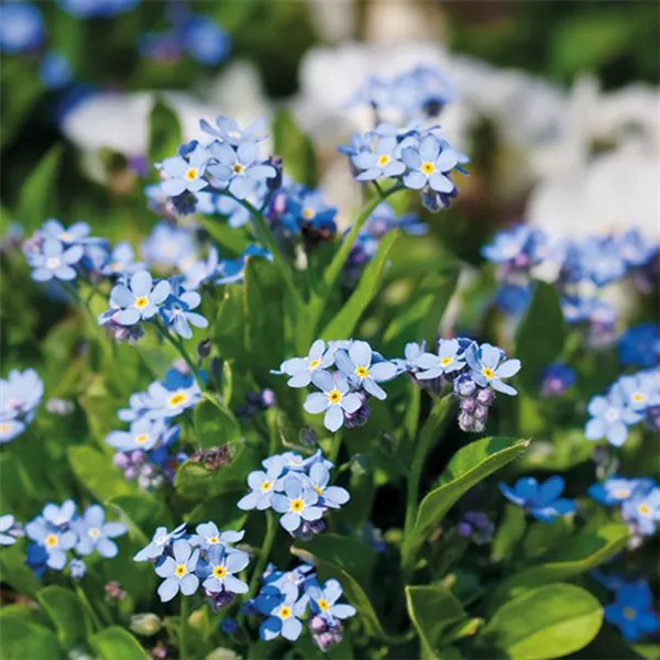Das Vergissmeinnicht (Myosotis sylvatica) gehört zur Familie der Raublattgewächse und blüht ununterbrochen bis in den April/Mai hinein. Im Garten ausgepflanzt steht es gerne im Halbschatten und benötigt eine regelmäßige Wasserversorgung. Die Blüten sind übrigens eine wahre Bienenweide. Einzelne Blütenstängel kommen auch dekorativ in einer Vase zum Ausdruck.