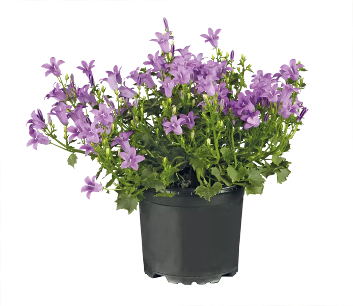 Die Glockenblume (Campanula portenschlagiana), auch Dalmatiner Glockenblume genannt, ist ein Dauerblüher mit herrlich blau-violetten oder lila sternförmigen Blüten. Im Frühling und im Sommer kann sie auch nach draußen ziehen und bevorzugt einen teil-schattigen Standort. Mit ihrem polsterartigen Wuchs eignet sie sich perfekt als Bodendecker, in Blumenkästen und Steingärten. Hier werden Bienen und Schmetterlinge Blüten magisch angezogen. Bis es soweit ist, verschönert sie drinnen jeden Tisch oder Kommode. Halten Sie die Erde feucht und entfernen Sie verwelkte Blüten regelmäßig, das fördert die Bildung neuer Blüten.